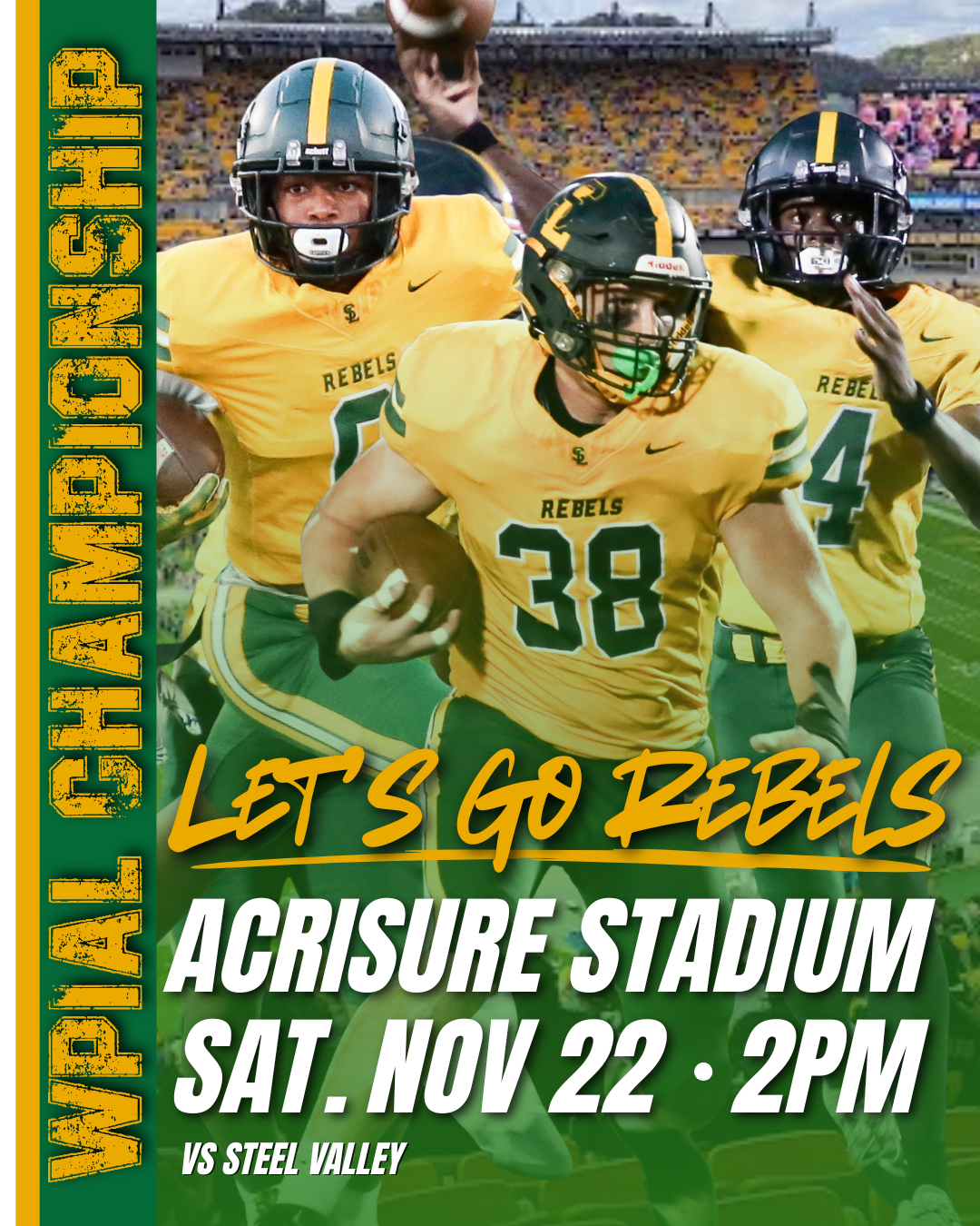 This Saturday, November 22nd, the Rebels will take on Steel Valley in the WPIAL Championships at Acrisure Stadium! Join us for any of our pre-game celebrations: